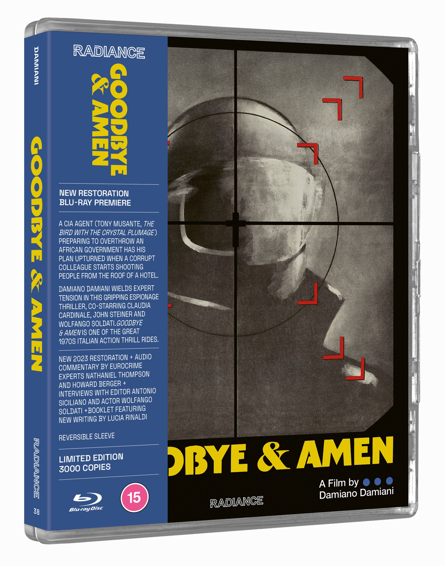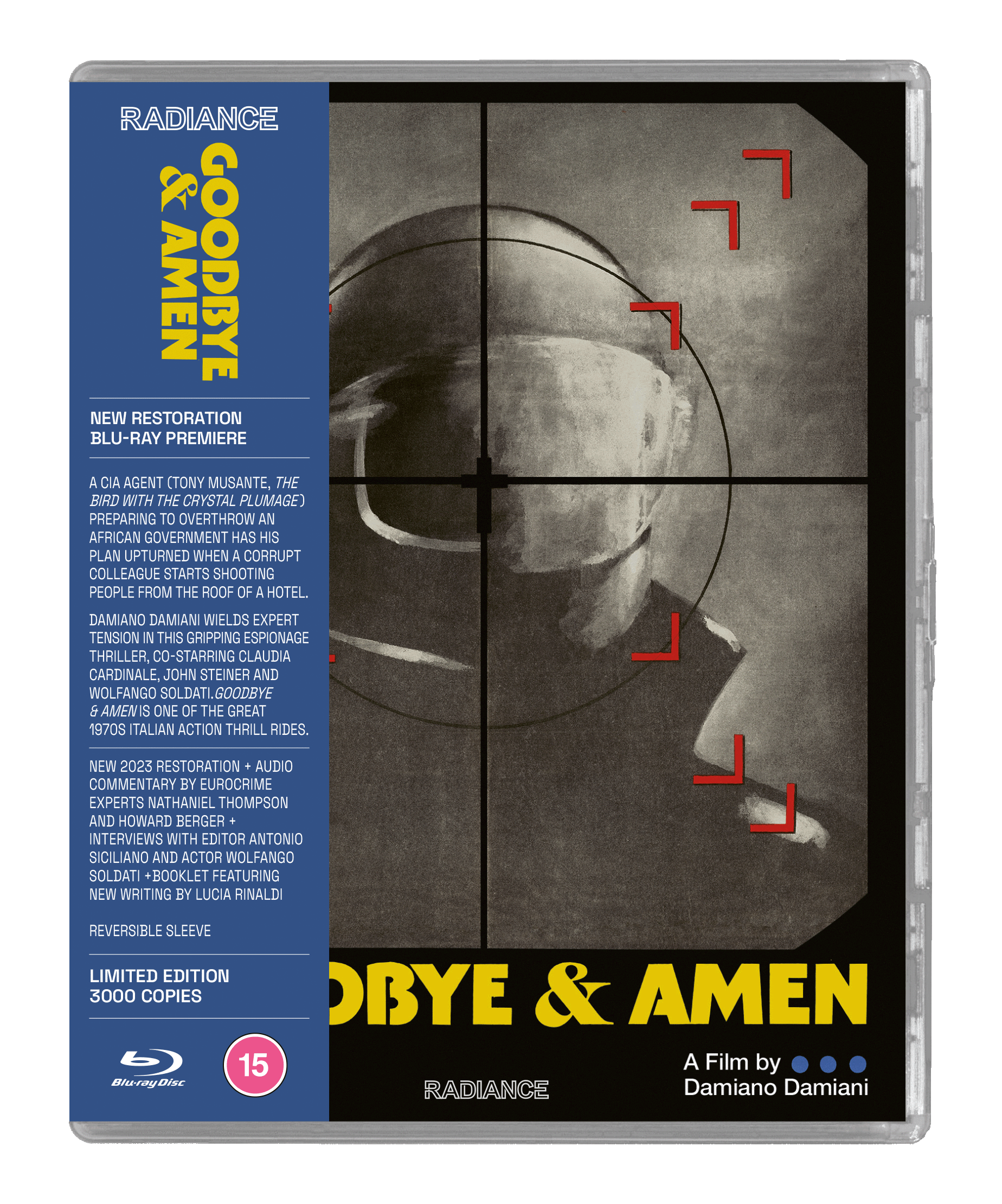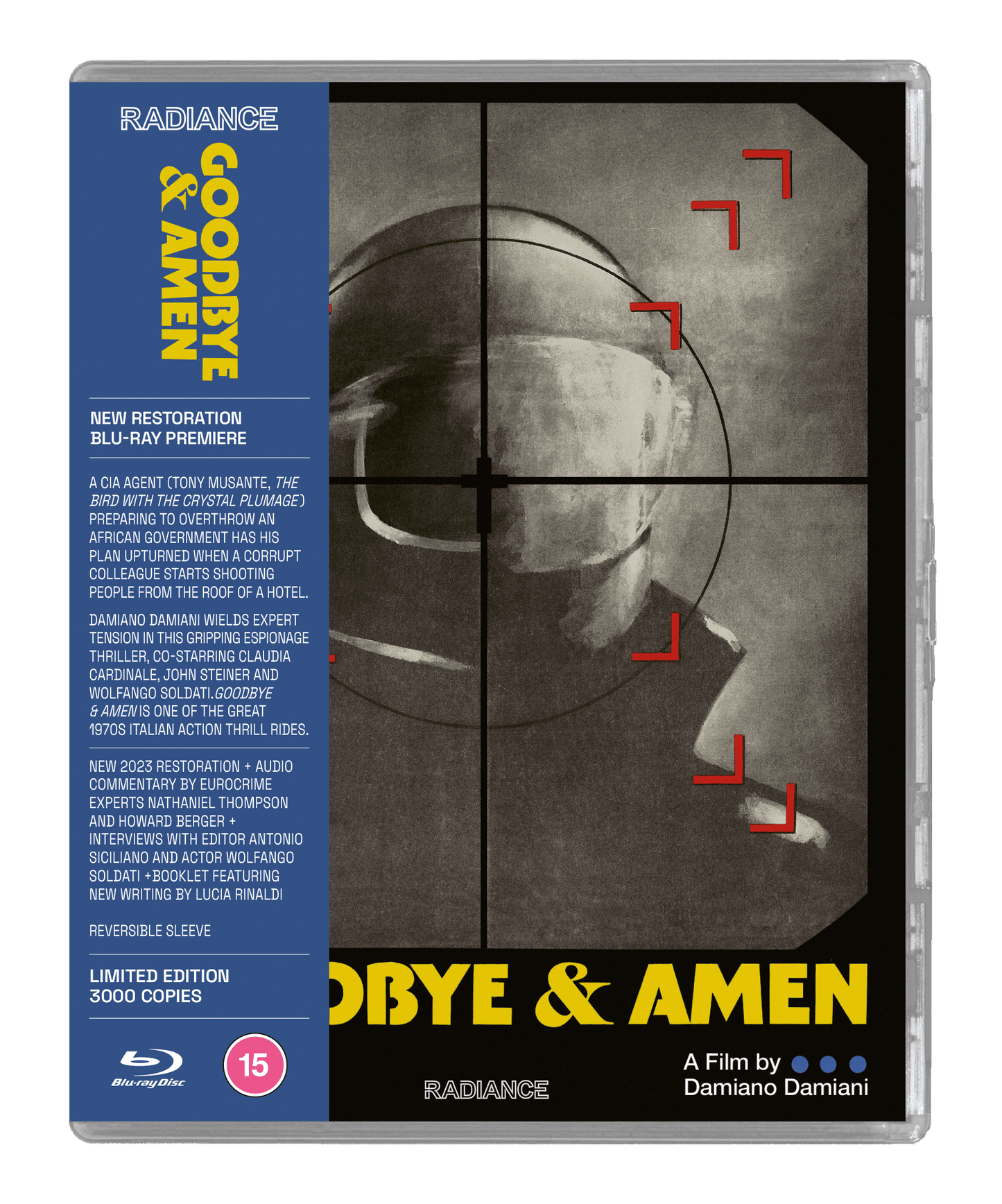 John Dannahay (Tony Musante, The Bird with the Crystal Plumage), a CIA agent stationed in Rome, is planning to overthrow an African government. But his plan goes wrong when a corrupt colleague starts shooting people from the roof of a hotel, taking an innocent couple hostage. Director Damiano Damiani (How to Kill a Judge) wields expert tension in this gripping espionage thriller, twisting and turning its tight plot to its sensational finale. Featuring a fantastic supporting cast including Claudia Cardinale (The Day of the Owl), John Steiner (The Case is Closed: Forget It) and Wolfango Soldati (The Heroin Busters), Goodbye & Amen is one of the great 1970s Italian action thrill rides, set to a haunting score by Guido and Maurizio De Angelis (Torso, Keoma).
