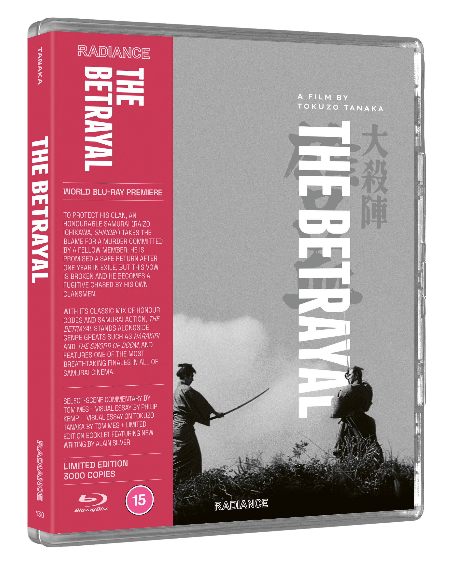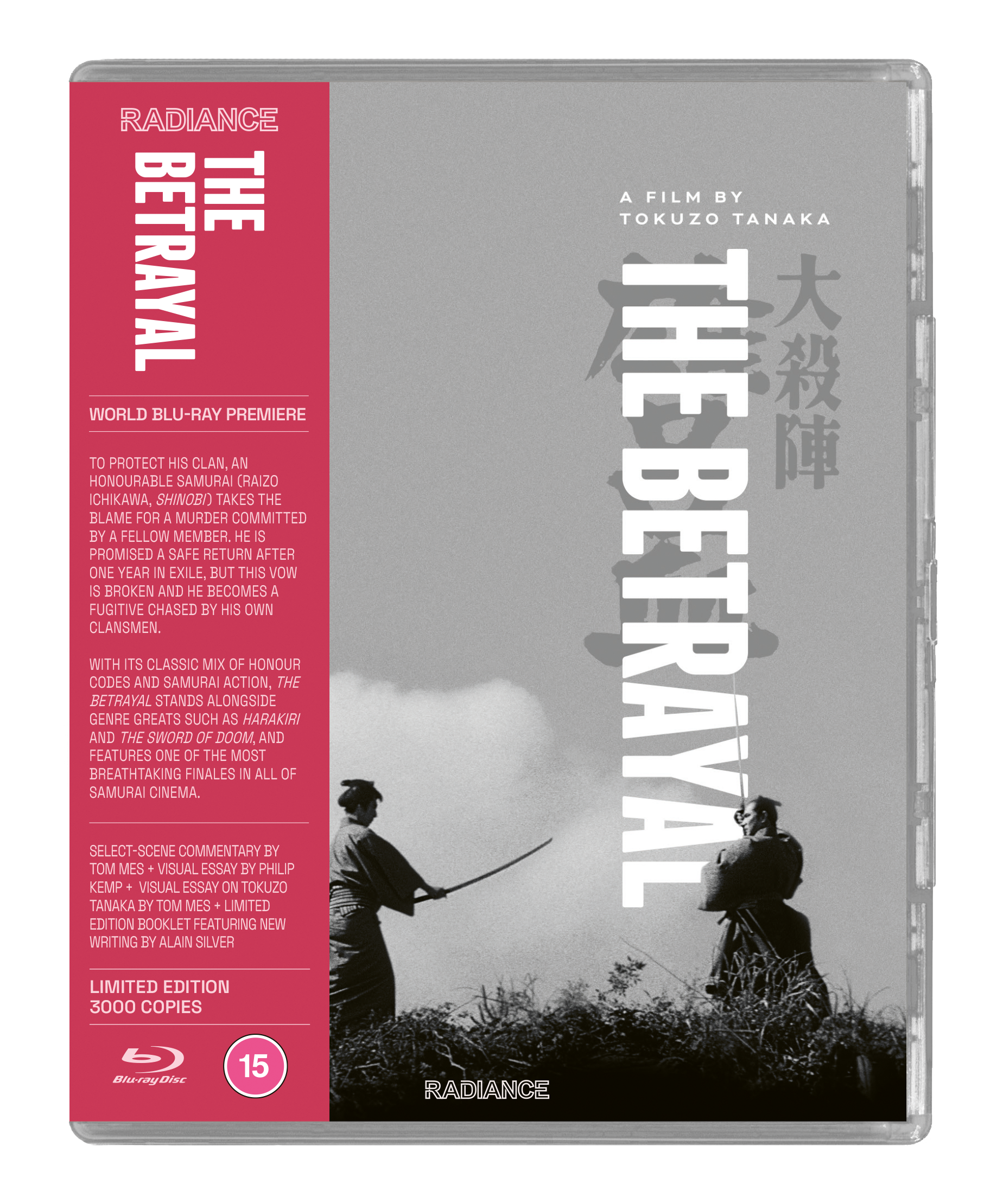 To protect his clan, an honourable samurai (Raizo Ichikawa, Shinobi) takes the blame for a murder committed by one of his fellows. He is promised a safe return after one year in exile, but this vow is broken and he becomes a fugitive chased by his own clansmen. Disillusioned by the bushido code of honour, he realises there are only two ways out: vengeance or death. From director Tokuzo Tanaka (The Snow Woman), a former assistant to Akira Kurosawa, this cruel jidaigeki stands alongside such notable works of the genre as Harakiri and Sword of Doom with its classic mix of honour codes and samurai action. Beautifully filmed in black and white ‘scope with thrilling set pieces, The Betrayal features one of the most breathtaking finales in all of samurai cinema.