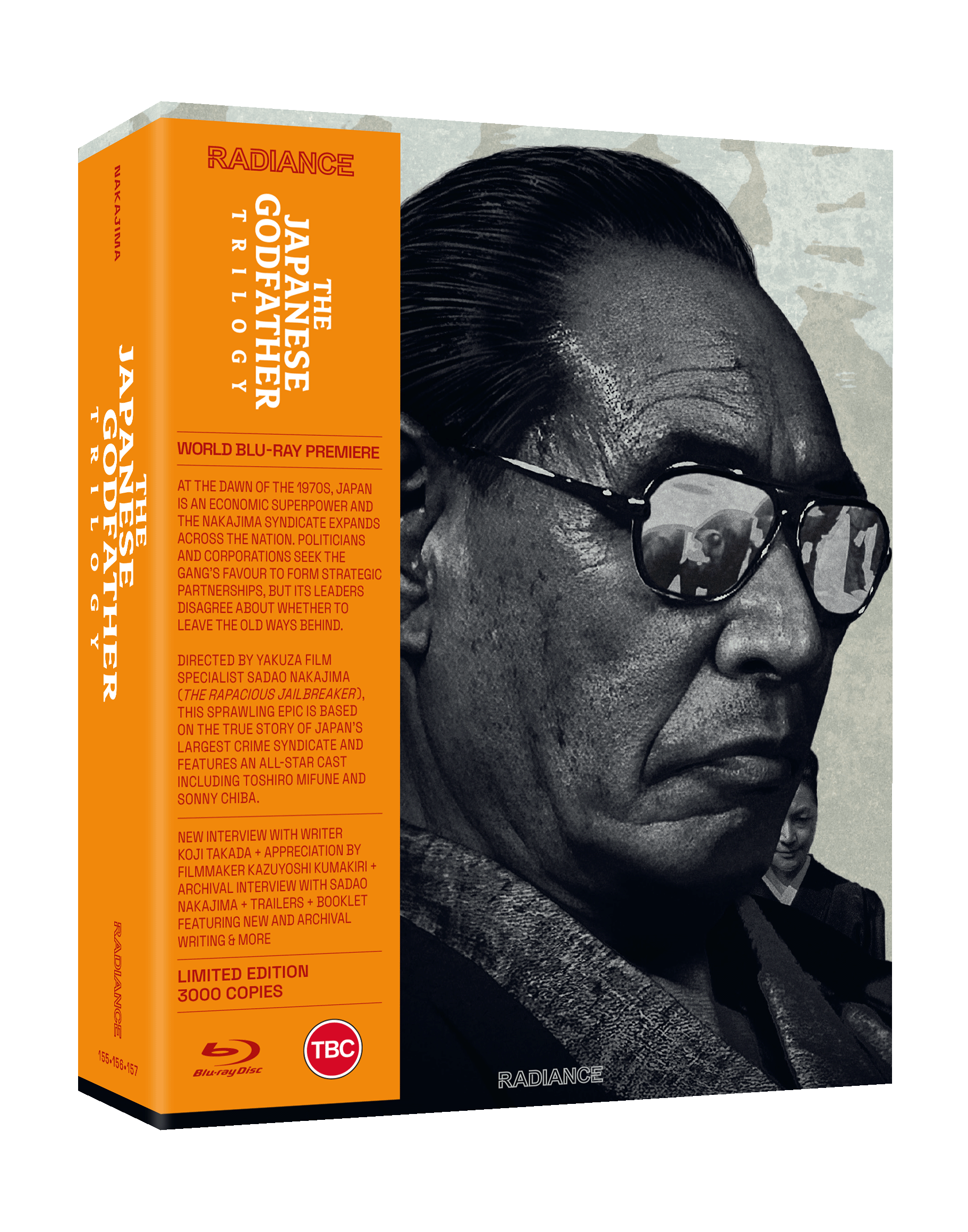 At the dawn of the 1970s, Japan is becoming an economic superpower and the Nakajima crime syndicate extends its grasp across the nation. Politicians and corporations seek the gang’s favour to form strategic and highly prosperous partnerships, but its leaders disagree about whether to leave the old ways behind for the sake of money and respectability. Directed by Toei yakuza film specialist Sadao Nakajima (The Rapacious Jailbreaker), this sprawling epic is based on the true story of Japan’s largest crime syndicate and features a cast of genre legends, including Koji Tsuruta (Big Time Gambling Boss, Sympathy for the Underdog), Bunta Sugawara (Battles Without Honour and Humanity) and Sonny Chiba (The Streetfighter, Hokuriku Proxy War).